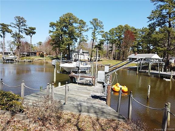Sturgeon Creek Waterfront with 2.54 Acres, 3 Bedrooms, 2 1/2 Baths, Sun Room, Screened Porch, and plenty of Garage/Workshop/Storage space to accommodate all the "Toys". Five Bay Garages, 1 drive thru, 1 RV/Boat height, Bathroom, Heat/Air, and 200 AMP service, Private Pier & Lift. Jackson Farm Acres offers its residents a private community boat ramp and boat slips. In the heart of Deltaville and within walking distance to the Community Swimming Pool, Tennis Courts, and Playground. This nautically inspired home had a total renovation, from 2011 to current, from the ground up. 2 Zone HVAC, new carpet, ceramic tile, Kitchen cabinets and counters, SS appliances, blown in insulation, Rinnai Tankless Hot Water, Interior/Exterior paint and more. Full length Trex decking waterside, private pier with 10,000# Boat Lift and Davits. 110' of water frontage with protective bulkhead and rip-rap. Quick access to the Rappahannock River and Chesapeake Bay.