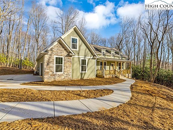 The split-bedroom layout offers privacy, with the primary suite occupying one side of the home. Enjoy a spacious en-suite bath featuring double vanities with makeup area, a walk-in tile shower with frameless glass, a deluxe garden tub, and his-and-hers walk-in closets.Upstairs, a finished bonus room over the garage provides a versatile space—ideal as a teen suite, theater room, home office, or even a fourth bedroom since the septic is permitted for 4 bedrooms. Two additional guest bedrooms share a full bath on the opposite side of the home. A dedicated home office just off the foyer adds flexibility and could serve as a nursery, additional dining space, or hobby room. Other highlights include abundant closet space and upgraded plumbing fixtures throughout, and a partial basement with outside entrance, ideal for golf cart or lawn storage, or finish for a man cave. Come see this brand-new home and make it your own. Located just 5 plus minutes to downtown West Jefferson and an easy 25-minute commute to Boone, this property offers both convenience and comfort in a beautiful mountain setting.