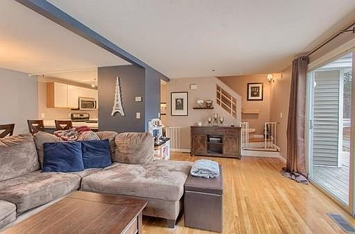 Welcome home! This modern and bright 2 bedroom, 1.5 bath end unit Glenbrook townhome with a loft and finished basement offers privacy and wooded views. Spacious living room and dining room with an open floor plan, gas fireplace and slider onto nice deck, perfect for relaxing and grilling in warmer months. Kitchen has stainless steel appliances, loads of cabinet space and a breakfast bar. Two large bedrooms on the second level with great closet space, plus carpeted loft with skylight over master bedroom which makes a lovely space for an office, studio or exercise area. The finished lower level offers additional closet space and makes a wonderful entertainment area or playroom, with access to a huge storage area and laundry room. Hardwood floors on main level and in bedrooms. Furnace new in 2017. All appliances included with sale. Two assigned parking spots near unit so you never have to drive around looking for a spot! 1 pet allowed. Don't miss this amazing opportunity!