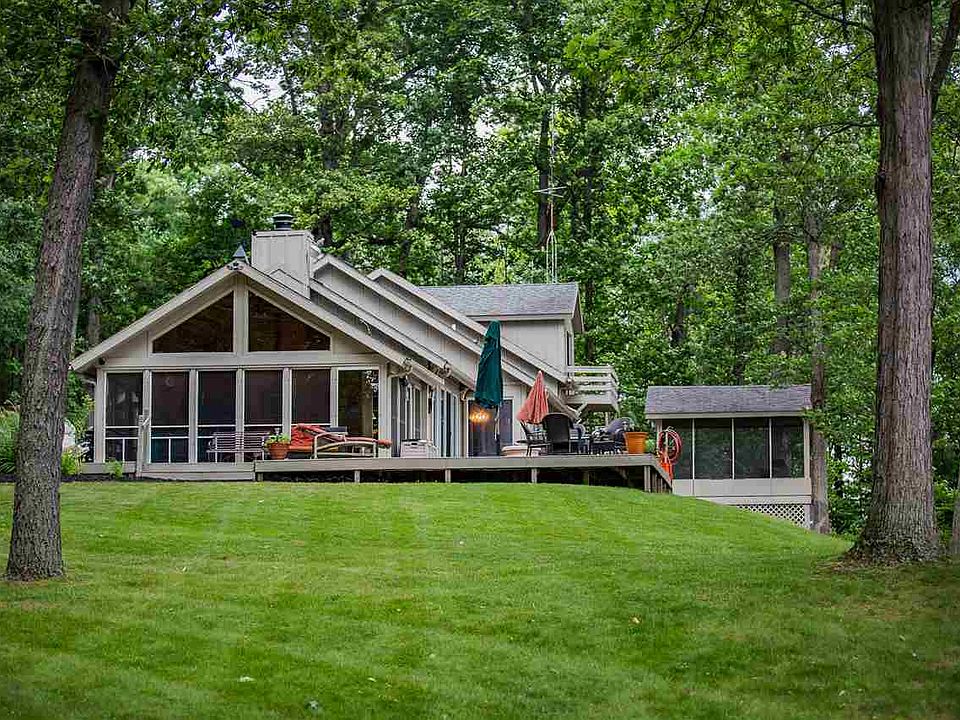 Feel like the your private retreat, with awesome views of Lake James. This lodge lake home has rooms for guests and features a large wrap around out door living deck. Two screened in areas offer night lake gazing. Property is currently used as a vacation rental during summer months. The views of Lake James are wonderful and the feel of country. Lot next to property can be purchased separately or with home. Close to association beach or use your own dock to get on the water. Association fees do apply. Parking for all the family an added plus at the lake. Come see this hidden treasure in Timber Bay.