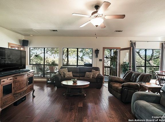Charming cabin in the woods sits tucked away in the trees just one block from the golf course with boat ramp near by for lovely Canyon Lake. Front porch entrance leads into the main level with open kitchen, living, dining space & master suite, as well as the study which could be used as a dining room or 4th bedroom & spacious deck. Downstairs you'll find garage access, two cozy bedrooms, spacious laundry room and a full bath. Back yard gently slopes away from the house with fire pit seating and roomy lawn.