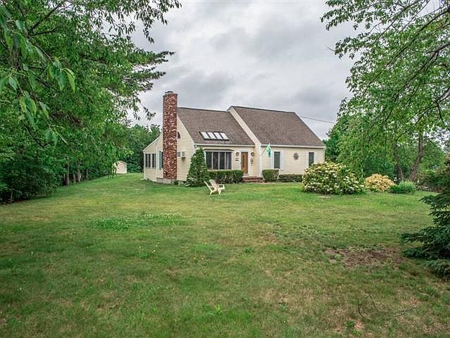 Classy Contemporary Cape on large 1 acre lot with a beautiful, private back yard oasis. Open concept living room w/ soaring wood cathedral ceilings/skylights and features impressive 15' field stone fireplace, w/ Jotul wood stove. Center Island white, bright Kitchen w/ granite counters and dining area opens to 4 season vaulted Sun Room overlooking back yard and sliders to custom paver patio. 1st floor bedroom suite and updated 1st floor bath w/ porcelain tile and double vanities. Enjoy privacy...