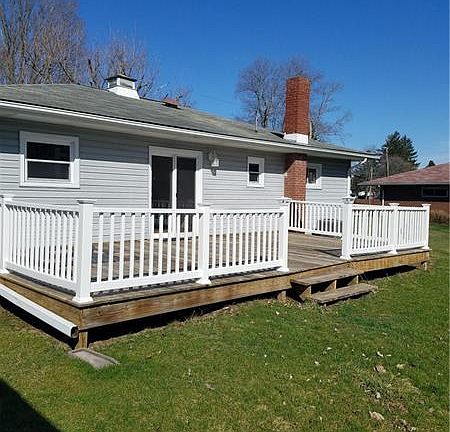 Very well maintained ranch home offering 3 bedrooms and 1 1/2 baths, a dining room, kitchen, living room, original hardwood floors, a full bath and a master bedroom with a 1/2 bath. Seller has made many improvements which include fresh paint throughout, newer windows, new entry doors, newer sliding doors that lead onto a large deck area for relaxing and enjoying the country atmosphere, newer hot water tank, newer gutters and downspouts, newer lighting, newer refrigerator, newer stove and much more. Furnace is a Lennox from 2005, central air in 2008 and newer electrical box. There is an abundance of closet storage space, a full basement for storage.