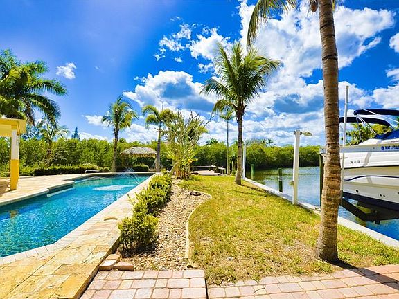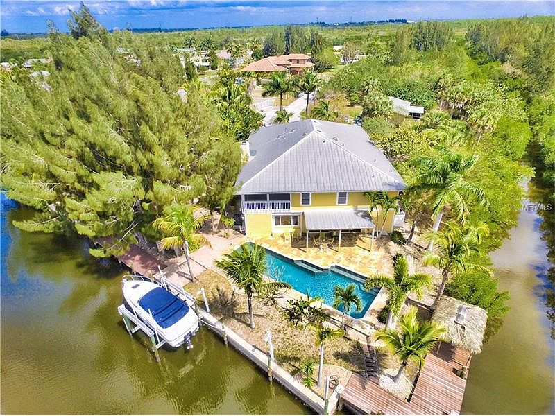 ONE OF A KIND-6 bedroom, 3 bath WATERFRONT POOL home. Surrounded by water on all three sides of this REMARKABLE PIECE OF PROPERTY. With 535 feet of water frontage, a private boat ramp, 13,000 lb boat lift, 45 ft Pebble tech lap pool, screened gazebo and tiki hut, gated and fenced, this can be your own PRIVATE TROPICAL PARADISE. Located on over 3/4 of an acre, there is plenty of room to park your RV or boats. Interior features include spiral staircase, entertainment room with wet bar, fireplace, SS kitchen appliances, granite counters, breakfast bar, glass front cabinetry, and much more... Master suite features French doors to the balcony, 2 walk-in closets, and private bath with dual sinks and walk in shower. Brick pavers mark a pathway all around the house with a wrap around porch surrounded by mature palms and tropical landscaping. Nestled in between Burnt Store Isles and Punta Gorda Isles, you're just minutes from I-75, Wal-Mart, restaurants, Home Depot, and downtown Punta Gorda. Nearby is also the Punta Gorda Regional Airport offering a wide variety of destinations. Punta Gorda was recently voted TOP PLACES TO RETIRE in WHERE TO RETIRE magazine and also voted #1 PLACE TO LIVE by CNN and MONEY magazine. Call to schedule your private showing today!