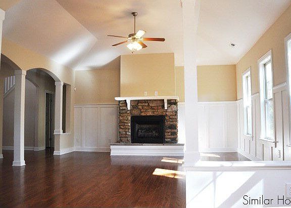 The Stratton E Plan. The charming Stratton is a 3,190 square foot two-story home with a unique floor plan. The foyer opens to a grand staircase and beautiful arched entrances to the dining room and great room. Dramatic columns separate the great room from the foyer and kitchen, creating distinctive views throughout the first floor. An oversized kitchen with working island includes a breakfast nook and access to the powder room. This four bedroom, three and one-half baths features a private owners suite on the first floor and an oversized walk in closet. The second floor includes 3 bedrooms and a spacious game room. Additionally, the Stratton features an expansive walk-in storage room. The second bedroom features full private bath and could be used as a second master suite.