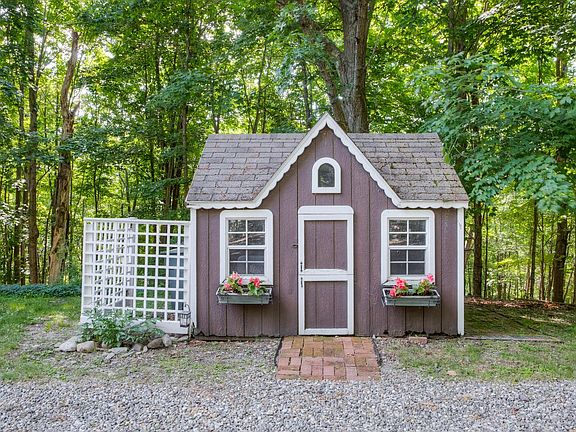 Private charmer on a country road-this 2/3 bedroom, 2 bath awesome home has a great room with cathedral ceiling and big stone fireplace. Chef's granite kitchen also has 5 burner gas range. Central air. French doors lead to large decking around the pool & distant farm views for dining & cocktails. The lower level has walkout separate entry off patio to bedroom with new bath. The detached 2 car garage has artist studio upstairs. We just don't come across country setups like this very often. You will be delighted!