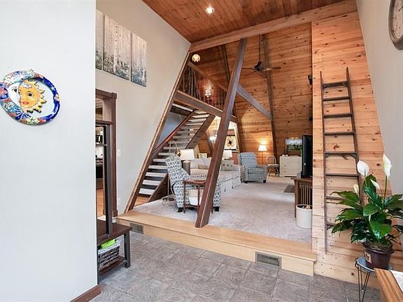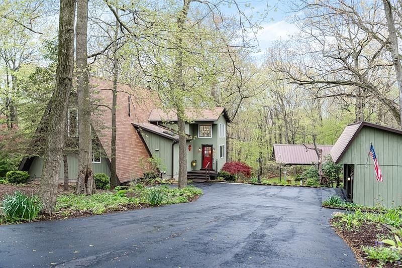 This enchanted home WILL NOT DISAPPOINT! Only the second time offered and surely to be as popular as before! Every nook and cranny of the house, outbuildings and gardens oozes of warmth, charm, whimsy and home! You cannot help but be mesmerized by this rich wood and cedar chalet perched on 3 private lots in coveted Daugherty Twp. Soaring ceilings with wooden beams lead you through the space which combines indoor and outdoor living on every level. AHHHDORABLE kitchen with papered ceiling and new SS appliances. Open stair to cozy loft bedroom with private Juliette balcony overlooking greenery. Two additional bedrooms on the main level (one currently used as an office with a window to wildlife). Lower level game room has built ins, full bath/laundry and another indoor/outdoor space. Large storage/tinker room. Pavilion with ceiling fan for entertaining, relaxing. Large detached garage with potting shed/tractor shed. Also*** Large outbuilding with electric/heat/water (was wood shop). OMG!