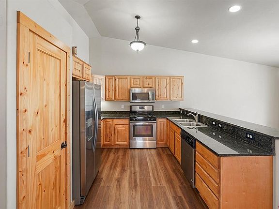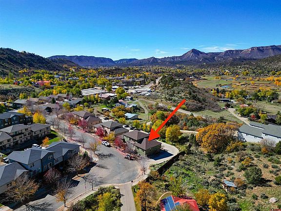 Beautifully maintained and filled with natural light, this end-unit 3-bedroom, 3-bath Mountain Trace townhome offers quality finishes and unobstructed views of the valley and surrounding mountains. This sweet location at the north end of town is so quiet with no road noise. The main level features new LVP flooring and a seamless connection between the living, dining, and kitchen areas—an ideal layout for both everyday living and entertaining. A fenced side yard with patio invites you to step outside and enjoy a morning coffee and is perfect for dogs. Enjoy views of Animas Mountain, Perins Peak, and the iconic Durango landscape. The kitchen boasts granite countertops, rich hickory cabinetry, stainless steel appliances, and abundant storage. Sunlight pours through expansive windows, enhancing warm interior details including travertine tile, slate and new LVP flooring (no carpet in this house), solid wood doors, custom trim, and well-considered lighting throughout. The main level includes two spacious bedrooms with excellent natural light and two well-appointed bathrooms. The lower level offers a versatile third bedroom with its own full bath—perfect for use as a guest suite, media room, office, or gym. Additional features include a two-car tandem garage, central A/C, plentiful guest parking, and a side yard ideal for pets or a small garden. Situated off CR 250 and 32nd Street, Mountain Trace is a quiet, no-through-traffic neighborhood within Durango city limits. Enjoy close proximity to local favorites such as Bread Bakery, Yoga Durango, and Star Liquor, all while being just minutes from downtown. Recently completed sidewalk and bike lane enables a quick run down 32nd street to the grocery store or a paddle on the Animas River. This would make an excellent rental with 3 bedroom each with their own full baths.