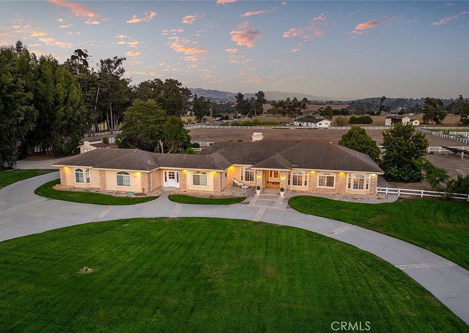 Set on five picturesque acres in the heart of Arroyo Grande, this custom Greg Nester estate blends timeless craftsmanship with modern luxury, creating a rare sanctuary on California’s Central Coast. With approximately 3,152 square feet of thoughtfully designed living space, the residence offers four bedrooms and three baths in a private setting where horses are welcome. Inside, the home is designed for both relaxed living and sophisticated entertaining. Two expansive living areas are enhanced by built-in cabinetry, a wet bar, and a four-unit entertainment center. The gourmet island kitchen features Bosch appliances, a Jenn-Air cooktop, a walk-in pantry, and ample cabinetry, while the adjoining dining room is perfectly suited for hosting. The master suite offers a spa-inspired retreat with a walk-in shower, complemented by ceiling fans throughout the great room and bedrooms for year-round comfort. A dedicated laundry/mud room with a shower adds both convenience and versatility. Technology and efficiency are integrated, featuring owned solar, Cat 5 wiring, surround sound, a whole-house fan, an intercom, and a full suite of security features, including cameras, motion lights, and a burglar alarm system. Golden State Water Company services the home, while a private well and 5,000-gallon storage tank support the landscaped grounds, complete with sprinklers and drip irrigation. Outdoor living is equally compelling, with a vinyl-fenced perimeter, gated dog run, storage shed, and fire ring for gatherings under the stars. A 4-car garage, plus RV hookups with a dump station, ensures ample parking and storage for both daily living and recreational pursuits. A rare offering of space, privacy, and refinement, 175 Michael Lane captures the essence of Central Coast living—where lifestyle, luxury, and land come together in perfect harmony.