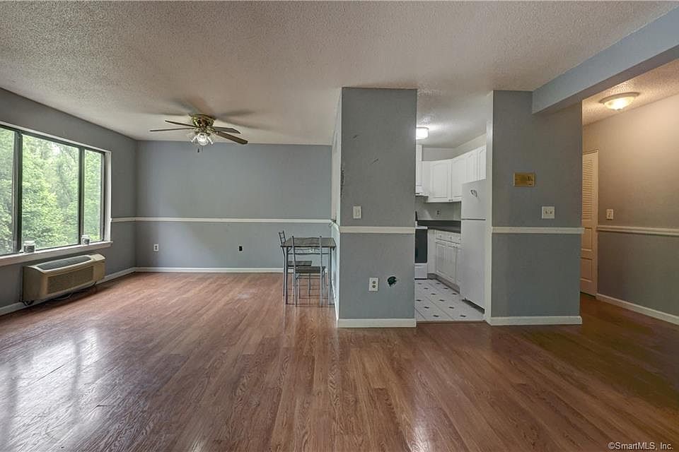 There is tons of potential in this newly listed 2 bedroom 1 and 1/2 bath ranch style condo. This condo boasts a generously sized living area with laminate flooring, and is soaked in natural light. The kitchen allows food and drink to be served through kitchen opening to the living area. The hall leads to a half bath and secondary bedroom opposite each other, with a master bedroom and full ensuite bathroom. This condo features one assigned uncovered space, with guest parking to supplement. These condominium units can be rented out as an investment, and comparable units from the previous year reached $1500/month. In the current market, they can surely attain higher, if updated. This unit's living room deck overlooks the Farmington canal walking trail, and is nearby Sleeping Giant State Park, Quinnipiac University, as well as many shopping centers, restaurants, and major highways. Unit is priced low, due to needing minor cosmetic repair, and washer/dryer is non-functioning. A light remodel would go a long way, and this remains an inexpensive investment opportunity.