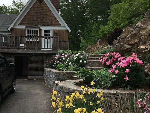 Charming Cottage with Impressive Architectural details throughout! Fabulous custom stonework and a designer landscape starts at your mailbox! The kitchen offers exposed brick, a garden window and a custom ceiling. The living Room and Dining Area are open concept, and share the solid wood beamed ceiling and a cozy fireplace. A large slider takes you from the dining area to the wrap around deck, while the living room takes you to an incredible stone patio and built-in fire pit. A great place to entertain and enjoy nature's beauty. A beautiful tray ceiling will command your attention as you enter the large master suite. The master balcony overlooks a serene and private level yard, lined with lush evergreens. The luxurious master bath offers a stunning dome ceiling, double vanities, jetted tub and a large walk-in shower. The second floor offers another large bedroom suite with cathedral ceilings. Newer ductless central air, On demand water heater, landscape lighting, audio system and much more! This is the one!!