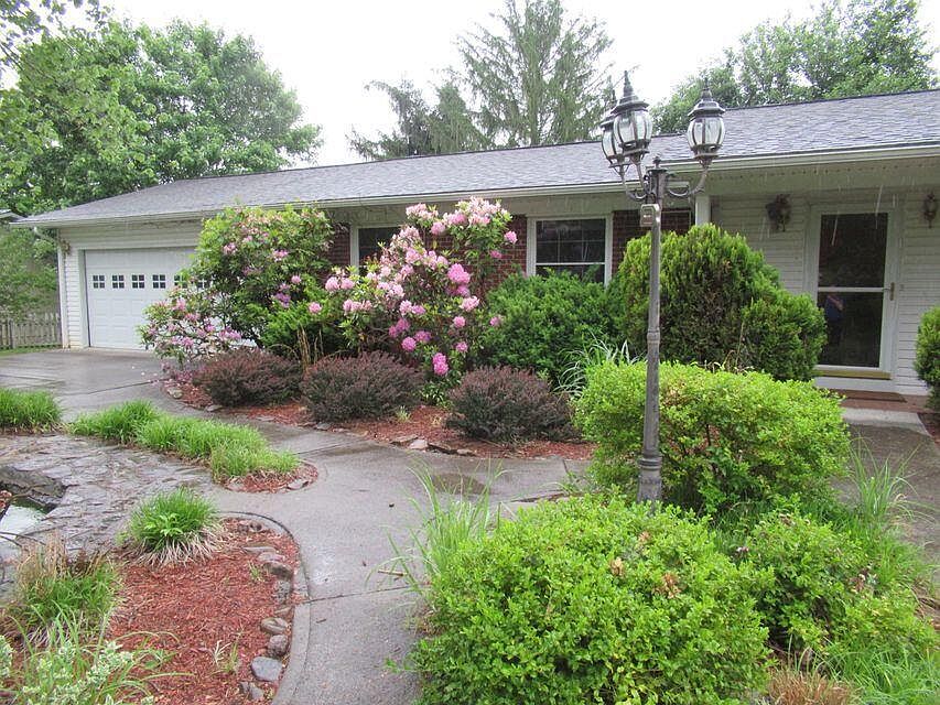 Alderson Corp-This ranch 2 bedroom, 2 bath neat clean brick 1 level with large level lot, with mature landscaping with KIO pond. Beautiful kitchen, on demand hot water heater, updated kitchen and bath. Huge 4 car attached garage 21x41 offers power, automatic damage door, workshop. Also has outbuilding. Double hung replacement windows and all appliances convey including the washer and dryer.