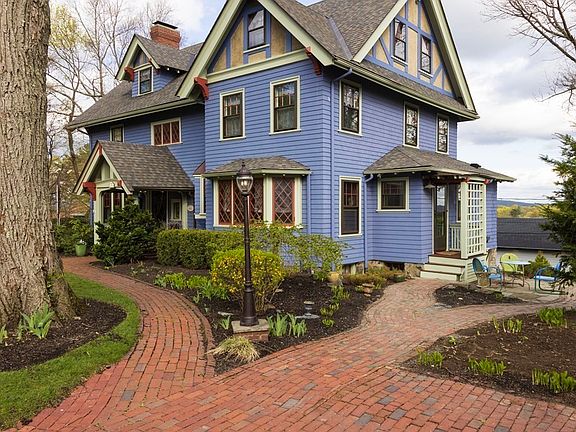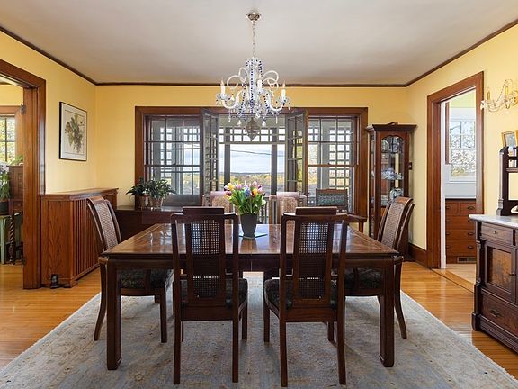 Perched on West Newton hill with panoramic views, this 4+ bedroom home boasts old charm elegance with all of today’s modern conveniences. The home was lovingly restored with new baths, kitchen, heating, air conditioning, and electric. Welcoming foyer leads to the front-to-back living room w/ fireplace, a grand dining room w/ attached screened-in porch overlooking the back gardens, a kitchen with a butler’s pantry, and a cozy family room. The second floor hosts 3+ bedrooms, one with a charming fireplace, and one with a second screened-in porch. The third level has been transformed into a primary oasis w/ a sitting area and new bath. Enjoy the incredible views from the walk out skylight. The basement offers an addition 1200 sq feet, with a full bath, laundry, a workshop, and ample storage. The grounds have been landscaped to perfection with charming brickwork and more. Prime location, less than a mile from West Newton, Newtonville, Newton North High School, Trader Joe's, and Whole Foods.