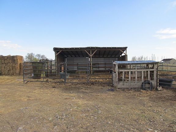 Bring your horses! This home on 5.6 acres is all set up for livestock. There are 2 separate pasture areas, loafing sheds, a hay shed, 3 dry pens, 2 garden boxes, and a riding arena with roping setup. Both pasture areas are irrigated with a pressurized pump system that is included. There is a 3 bay shop for all of your equipment along with plenty of parking for your trucks and trailers. Inside the home there are 4 bedrooms and 2 bathrooms and tons of room for storage. A new metal roof was installed on the home in 2014. All appliances are less than 10 years old. There is a wood burning fireplace to cut heating costs and ensure warmth even during a power outage. Come take a look!