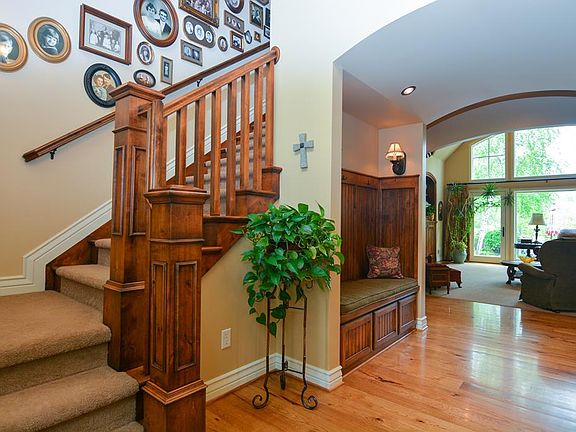 Country home on a private lane with 12.01 acres which includes pasture, trees, pond and water feature. Formal entry with stairs leads to two bedrooms with walk in closets and full bath. French doors lead to den. Great room features included vaulted ceilings and large windows overlooking patio and landscape. Stone surround gas fireplace with carved mantel. Custom knotty alder cabinetry and built ins throughout entire home. Flooring throughout includes hickory hardwood, carpet and custom tile. Spacious kitchen features granite, stainless steel appliances, two drawer dishwasher and duel fuel oven/range with additional wall oven. Bonus Room features built in desk, walk in closet and full bath. Master suite features sitting area, and large walk in closet. Master bath features jetted tub, tile surround shower and dual vanity sinks. EXTERIOR FEATURES INCLUDE: Covered wrap around front and back porches adjoin a large terraced patio with hot tub. Over sized 2 car garage.1.5 acre pond with docks and paddle boat. 44'x50' shop with attached workshop, half bath and storage loft. Close proximity to Kelly Canyon Ski Resort, Heise Hot Springs and Recreation Area. One mile to South Fork of Snake River for prime fly fishing. Less than two hours from Jackson Hole and Yellowstone National Park.