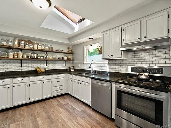 Incredibly private 4 Bedroom, 2.5 bath home on 2 acres. Enjoy serene views from the front balcony and watch eagles and other wildlife. Completely remodeled and spacious. This home features a modern kitchen, stainless steel appliances, skylight, new flooring, fireplace and finished family room in the lower level with wood stove. Additional upgrades include a new garage roof, freshly painted, new septic tank, new well tank many new windows. 2 Garage has been recently finished with permits and can be used as a home office, workshop, woodworking, artist studio etc. Enjoy the benefit of lower electric bills through Wallingford electric company. Close to the statepark and hiking trails. Great opportunity!