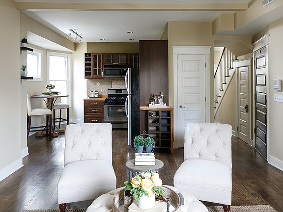 Keats Bluff is located in the the heart of the Frankfort Avenue historic district, at the end of a cul-de-sac, with sweeping panoramic views of the city. Thoughtfully restored to its original grandeur, with 9' ceilings, period mill work, and timeless architecture, this unit offers so much for the discerning buyer. Open kitchen/great room design, flooded with natural light from the banks of windows, set the perfect backdrop for entertaining. Updated cabinets, with butcher block counters, stainless steel appliances and double sinks. From the great room area, a hallway leads you to a large bedroom, adjacent to a full bath, complete with original claw foot tub and subway tile accents. Upstairs you will find an incredible en-suite master. Vaulted ceilings with recessed lighting, striking architectural detail, with reclaimed doors used floor to ceiling as a wainscoting wall. Walking into the spacious master bath suite, complete with travertine tile, separate water closet, and walk-in shower with rain shower head and multiple nozzles. Large master walk-in closet offers unrivaled storage for a historic building. Private patio in the rear makes you feel nestled among the tree tops. Laundry within unit, secure building with additional storage in the basement, and a covered parking space make this the perfect unit to enjoy all that Frankfort Avenue has to offer, while providing the perfect setting to call home. Call for a private tour today.