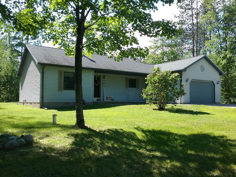 GREAT STARTER HOME. PRICE REDUCED. Well maintained frame home on 10 +/- acres. 2 bedrooms, 1 full bath with open floor plan. 2 car attached insulated garage with an additional 2 car (26x32) detached garage for all of your extra toys. New stove and fridge and a new furnace. Great hunting parcel and 3 miles to DNR access site to Mullett Lake. Parcel is high and dry. Immediate occupancy.