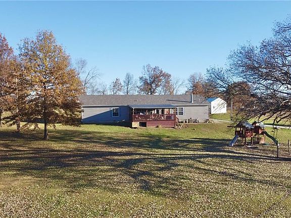This little piece of heaven, hidden in the heart of north central Missouri, is nestled on 6.2 acres just a few miles from Trenton. This property has it all…beautiful manufactured home with 2,305 square feet of living space, three outbuildings, and a fantastic pond. A split floorplan with the kitchen, dining room, living room, and family room that includes a fireplace with wood burning insert, being centrally located highlight the layout of this spacious home. There are 3 generous sized bedrooms with a Jack and Jill bathroom, plus the master bedroom featuring a master bathroom and double walk-in closets. The laundry room and a third full bathroom complete the all on one level design. The outside has just as much or more to offer with a 30x40 metal building with concrete floor and two overhead doors with openers and a 16x24 one car detached garage with concrete and overhead door with opener. There is also a 30x38 cabin that with a little TLC would make a great place for guests or even an Airbnb. So many opportunities to enjoy everything the country life has to offer from the picturesque views sitting on the covered deck to kayaking or fishing in the pond. This property has so much more to offer including an outdoor wood stove, fruit and pecan trees, an underground dog fence, and high-speed internet.