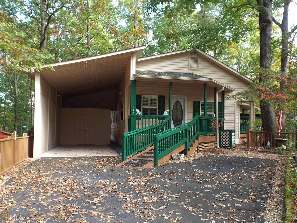 Den, Living Room, Dining Room,2 bedroom, 2 bath home in a wooded setting, large deck overlooking an additional sitting area that backs up to green space. lots of storage, tall carport to protect your auto or RV, low to no yard maintenance. Good walking areas, 3 Swimming Pools, heated indoor and outdoor, Club House, Members Lodge, 50 acre fishing lake with paddle boats and Jon boats, exercise facility, Pool table, Ping Pong table, Bingo for all every Saturday night, Play ground, water slide. Do not want to cook go to the Diner. Area to watch TV or just relax. Outdoor theater on Friday nights and lots more