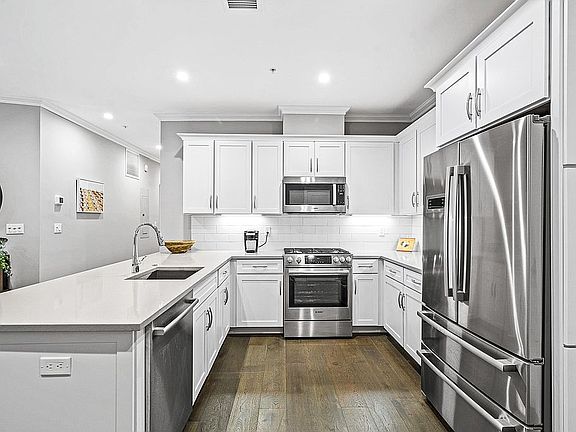 COMING SOON Wakefield Station Condo! Front facing 2 bed//2 full bath built in 2018 still feels new. Featuring wood floors throughout & in-unit laundry. Spacious primary bedroom with en-suite bathroom and large walk-in closet. Open concept living room/dining room. Kitchen has dual fuel gas/electric oven with exterior venting microwave, bar top peninsula and quartz counters. Wakefield Station is just 1/2 mile from popular Lake Quannapowitt, Wakefield’s vibrant downtown, and right across from the commuter rail. Residents of Wakefield Station enjoy plenty of on-site features and amenities including indoor climate controlled parking garage with direct access to lobby, elevators, and beautifully appointed common areas including a concierge office, gym, mail area, package storage, and landscaped common outdoor patio area with gas grills and seating. Enjoy easy access to restaurants and more on first floor. Comes with 1 deeded garage parking spot & 1 deeded exterior spot.