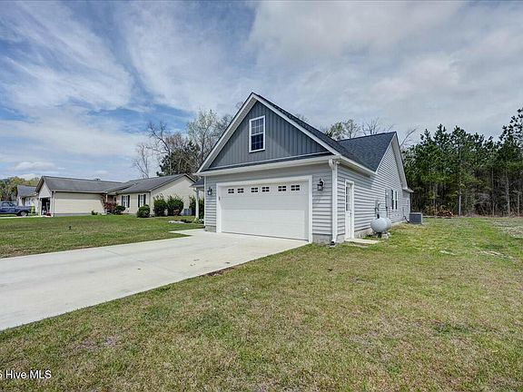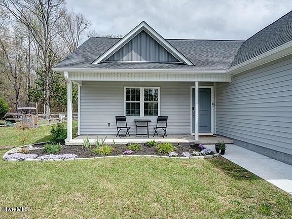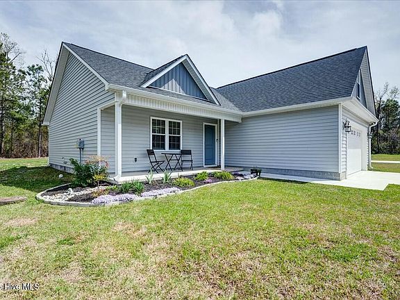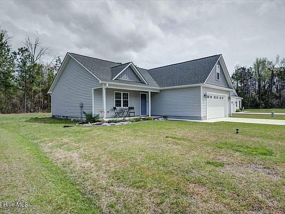 Welcome to this stunning 3-bedroom, 2-bathroom home, only two years old and perfectly situated between vibrant downtown New Bern and Marine Corps Air Station Cherry Point. Located on a quiet cul-de-sac, this home offers a peaceful setting with the convenience of nearby amenities. Step inside to a thoughtfully designed floor plan with modern finishes throughout. The spacious living area flows seamlessly into the kitchen and dining space, perfect for everyday living and entertaining. The home also features a set of stairs leading to an unfinished attic space—offering endless potential for a bonus room, office, or extra bedroom. Whether you're a first-time buyer, military family, or simply looking for low-maintenance living in a fantastic location, this home checks all the boxes.