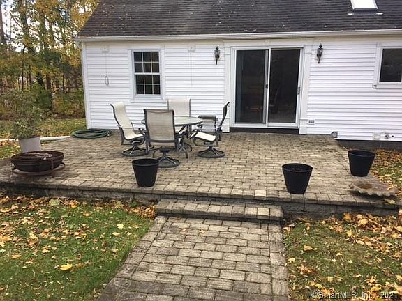 New England Cape in move in condition. Offers 2 main level bedrooms with hardwood floors or 1 bedroom and home office , main level full bath, large living rm and dining rm both with new carpet. Custom kitchen with vaulted ceilings, hardwood floors, recently updated. Central AC. Sliders to Stone patio overlooking beautiful level backyard. Upstairs offers master bedroom with sky lights, large master bath with whirlpool tub and plenty of storage. Full basement with 1 car garage with work area and large storage area. Connected to town sewers and the assessment is paid in full. All permits are in place. Convenient location, close to I 84.