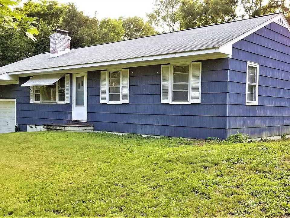 Charming one level living on just over an acre lot. Master bedroom with own entrance off deck and wood stove. Hardwood floors throughout, central air, heated garage and upgraded electric. Living room has a working fireplace that was recently cleaned, pointed and capped. Town water hook-up also available. With a little vision, there is a lot of potential with the lower level yard. You can create your own serene and private playground as well as additional parking. Great commuter location and conveniently located. Don't miss this one!