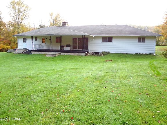 GORGEOUS PRIVATE PARK-LIKE SETTING! NO COMMUNITY! NO DUES! MINUTES TO BEAUTIFUL LAKE WALLENPAUPACK! This 3 Bedroom, 2 Bath Ranch features One-Level Living, a Large Living Room with Stone-Faced Fireplace, Dining Room, Eat-In-Kitchen, Hardwood Floors, a Full Unfinished Basement for future expansion, Oversized Garage and a Paved Circular Driveway! You will LOVE the peacefulness and privacy this 1.34 Acre Parcel has to offer. Close to Major Highways, Casino, Water Parks and much more! Come take a look today!