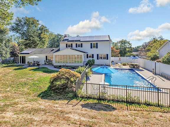 Elegant Colonial Retreat in Oronoque - Golf Course Views & Resort-Style Living. Step into timeless sophistication with this beautifully maintained 10-room Colonial nestled beside the lush fairways of Oronoque Country Club. Freshly painted interiors and gleaming hardwood floors set the tone for refined living throughout. The heart of the home is a spacious eat-in kitchen featuring granite countertops and ample cabinetry - perfect for casual breakfasts or entertaining guests. The inviting living room boasts a cozy fireplace, while the formal dining room and family room offer versatile spaces for gatherings and relaxation. A sun-drenched sunroom overlooks the picturesque backyard, creating a serene spot to unwind. The main floor also offers in-law potential with a private office/den entrance and full bath - ideal for guests or multi-generational living. Outside, enjoy your own private oasis with a fabulous inground pool, expansive concrete patio, and manicured lawn. The attached two-car garage, central AC, sprinkler system, and maintenance-free vinyl siding ensure convenience and comfort year-round. The lower-level rec room adds even more living space, with room for hobbies, workouts, or a workshop. This is more than a home - it's a lifestyle. Don't miss your chance to own this exceptional property.