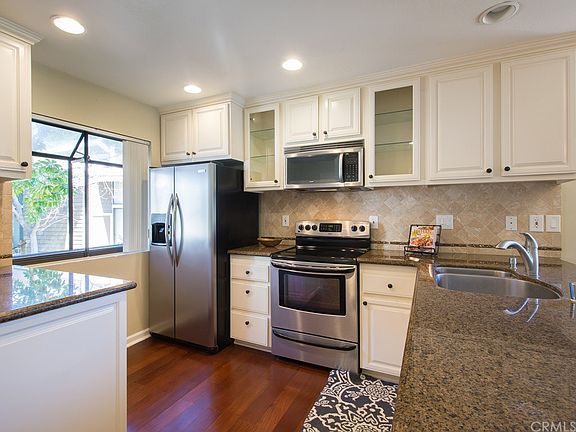 Stunning location, Stunning upgrades! Inside the complex - but not a 2-day trek inside - End unit just past the 1st bridge! Townhouse! Gorgeous location surrounded by water, but just steps to parking. Walk to internationally desired schools, shopping, and of course OC's best employers! Wide open upgraded kitchen - cabinets & granite counters, canned lights, stainless steel - to the dining and living room, followed by sliding glass doors to the patio surrounded by mature trees and water!! 2 Bedrooms upstairs with "1.25" bathrooms (the 0.25 bathroom is a double vanity in the master suite that is connected to the full bathroom - great layout, see floor plan). High freshly scraped ceilings. Master bedroom has walk-in closet. A/C was recently installed! Look for more pictures & video and of course the public viewing schedule.