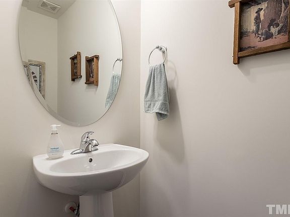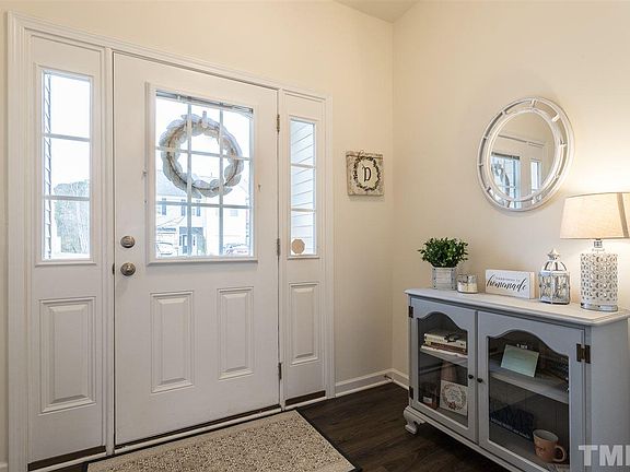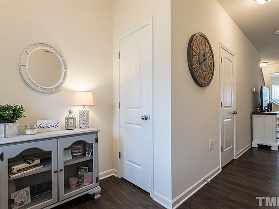 Stunning, well maintained 2 story townhome w/airy front porch conveniently located near I-40 and Hwy 42. The first floor features an open concept w/beautiful engineered hardwoods, garage entry, generous living room, eat-in dining, pantry and upgraded kitchen cabinets and hardware. Upstairs features a spacious master suite w/dual vanities, shower, 2 additional bedrooms, partially floored pull down attic and hallway laundry. Large patio and storage room. New roof and front exterior vinyl siding - 2019.