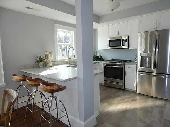 Welcome to "The Residences of Poplar Hill"! This updated unit consists of 2 levels of living w/ 6 rooms, 3 bedrooms & 2 full baths. Stunning gourmet kitchen w/ white Shaker cabinets, w/ granite counters, and GE stainless steel appliances. Large master bath w/ custom walk-in shower. Recessed lighting, high ceilings, hardwood flooring, stunning master suite, with custom walk-in shower, central air, hardwood flooring, private deck and so much more! This newer complex sits on almost an acre of land w/ mature trees, professional landscaping & stunning views of Boston. Exterior features include Hardie plank & stone veneer siding, maintenance-free vinyl decking & railings, private outdoor space, outdoor common area, off-street assigned parking, new windows, and energy-efficient furnaces, water heaters, and appliances. Located just steps from Roslindale Village shops, restaurants, and commuter train to Boston. Don't miss this one! Complex driveway is on Kittredge St.