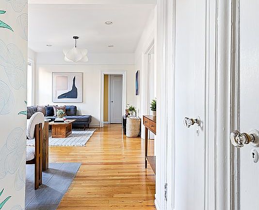 Beyond the beautifully designed interiors, with archways, moldings and beautiful wood floors, this home offers unmatched functionality with ample storage—including a secured storage cage in the basement, in-building laundry, stroller parking, and complimentary bike storage. Residents also enjoy access to a lushly landscaped courtyard and community garden, providing a peaceful retreat just steps from the building’s striking Art Deco lobby.