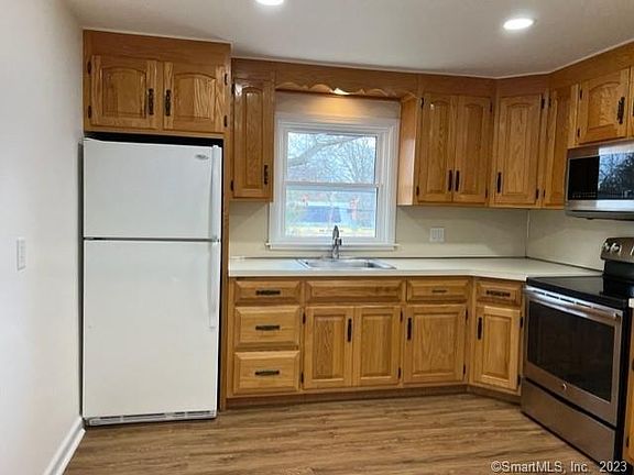 Beautifully remodeled first floor unit w/3 bedrooms and 1 bath, is move-in ready....Gorgeous hardwood floors throughout w/spacious living areas and nice sized bedrooms w/plenty of closet space. Freshly painted throughout w/all new lighting and convenience of laundry hook-ups, right within the unit. Off street parking available for 2 cars...Landlord will take care of outside yard maintenance along with snow removal. Close proximity to everything...including schools, parks, playgrounds, eateries, shopping/mall, health clubs, banking, Sacred Heart University etc...Excellent commuter location with all major highways only minutes away. "Come make this your new place to call home!" Unit is #73 on left hand side. No use of garage or basement....