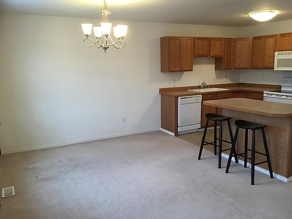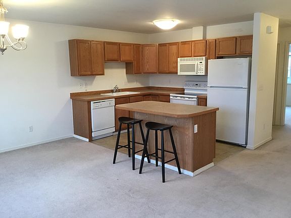 1200 Sq foot 2 bedrooms, 2 bathroom condo, with 1 car garage in great JBER commute location. Open kitchen w/oak cabinets, electric range, microwave, dishwasher and refrigerator. Washer and Dryer provided in unit. Trash/water/yard maintenance/snow removal provided. One year lease. Tenant pays gas and electric.