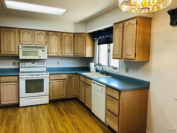 Get your offers ready because this will not last! 2 bed, 2 bath ranch style townhouse located near the Pueblo West Golf Course. This home is in pristine shape, new paint, new carpet, new tile, new laminate throughout the home, along with a newer water heater, and roof . Kitchen is a good size with cute little eating nook, Master bedroom features large walk in closet and 3/4 bath. This home feels like home from the minute you walk in!