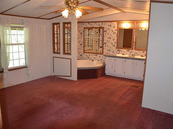 60x12 Covered front porch*13x16 back deck* 2 storage buildings*18x20 Carport*Mobile home is underpinned*Split bedroom plan*Large corner garden tub and separate shower in Master along w/walk in closet*Refrigerator and washer and dryer remain*Cash sale preferred*Will not FHA/VA*
