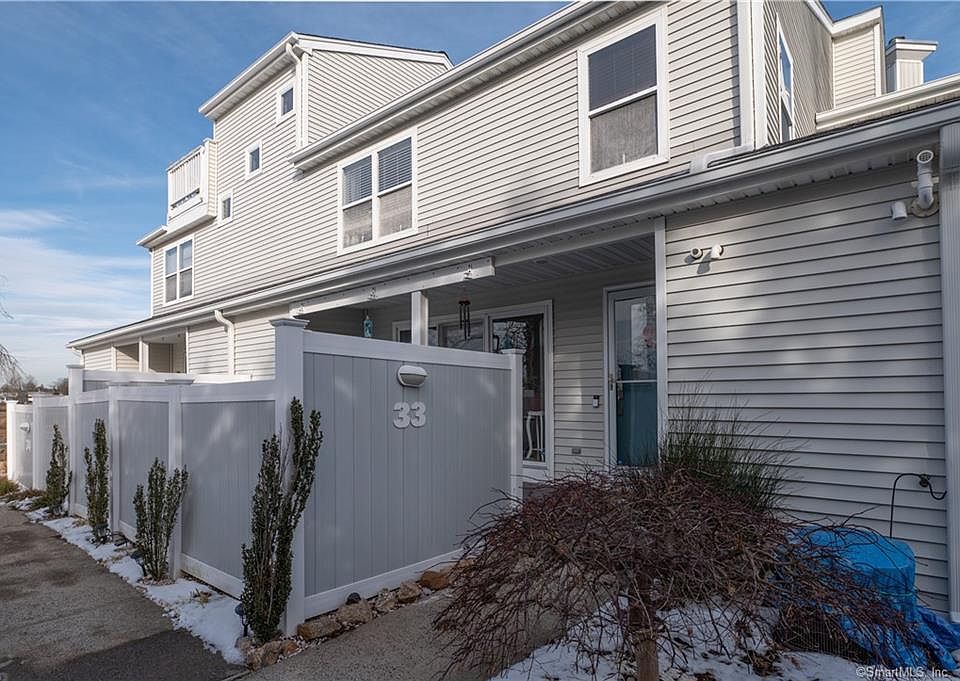 PRICE REDUCED!! MORGAN POINT! Nestled quietly in a well situated corner of OLDE TOWNE LANDING, this STUNNING unit will impress with it's sweet and rare marsh view of Morris Creek Nature Preserve and tasteful renovations. Come summer, enjoy the good life with morning coffee and sunsets on your fenced patio deck and your short walk to the the beach. LR with gas fireplace, 3 panel sliders to deck, hardwood floors, open floor plan to DR and Kit, half bath and more. Upstairs to your spacious primary with vaulted ceiling and 2nd bdrm, oodles of closets, laundry and smashing new bath. Both bedrooms have more marsh views! Third level loft space with skylight makes a great home office. Plenty of storage on every level. The homeowner has spared no expense with renovations: two new baths 2023, (you won't want to leave the gorgeous new shower!) new systems and appliances: Tankless(Gas)hot water 2022, AC compressor 2022, Frigedaire stove, Midea Fridge, Bosch dishwasher, new subway tiles(all 2023) all complete the modern kitchen's wood cabinets and granite countertop. 2nd level laundry has new washer too! Even the LR TV stays! Downsize, rightsize or start your new road to homeownership. This unit fits the bill. Olde Towne Landing is perfect in size and location with 42 units tucked away in this quaint beach neighborhood just minutes to highways, New Haven, Yale, culture, entertainment, shopping and everything you can want or need. AND NOT IN A FLOOD ZONE!