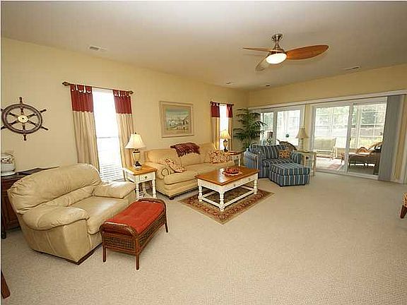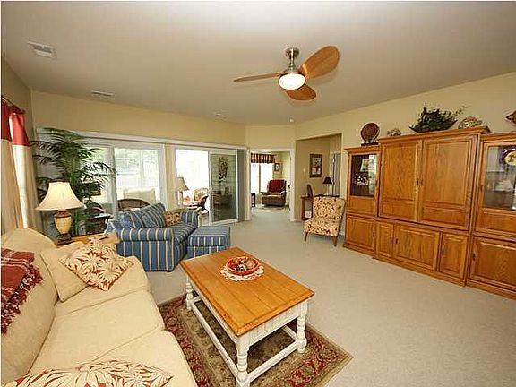 Privacy galore in this comfortable Surrey Crest model that has been used as second home and shows like a model. House sits on beautiful lot featuring a large berm & lagoon behind the house so you will never have anyone living behind you. There is so much in this home that would cost several thousand dollars in new construction. Entrance foyer & kitchen have hardwood flooring. Kitchen features recessed lights, stainless steel appliances including refrigerator, upgraded slide in electric range, built in microwave & built in dishwasher. Also featured are corian counter tops, convenient center island providing overhang for stools to enjoy the quick meal or snack & back splashing on walls. In the laundry room is ceramic tile floor, washer & dryer along with extra cabinets. The painted garage has pull down stairs leading to attic storage. House has tech shield roofing system for increased energy efficiency. Great room has upgraded wall to wall carpet, ceiling fans & faux wood blinds. Office also has upgraded wall to wall carpet, ceiling fan & faux wood blinds. Master bedroom offers tray ceiling, upgraded wall to wall carpet, ceiling fan & faux wood blinds along with large walk in closet. Master bath has ceramic tile floor,dual vanity sinks, comfort height toilet, soaking tub and separate shower. 2nd bedroom has the upgraded wall to wall carpet, ceiling fan and faux wood blinds. From the great room there are two sliding glass door leading to enclosed porch complete with vinyl windows to give you months of carefree living. Off the porch is a large patio with natural gas outlet for your grill.