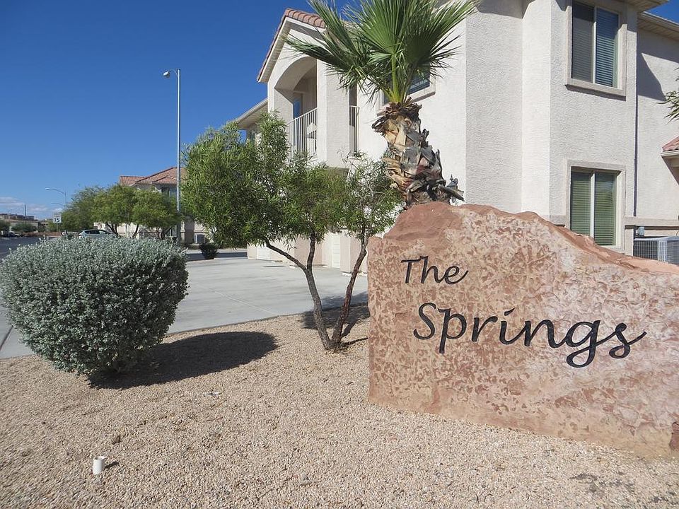 Great 2 bedroom, 2 bath plus attached garage! Enjoy balcony and very spacious living room, open to kitchen and dining. 3 yr old AC unit, new garbage disposal, new Water Heater. Nice NE facing unit. Enjoy all the amenities: Club house, pool, gym, park area. The Springs is a unique development as it allows Seasonal and short term rentals. Great concept for someone that wants to use their condo when they want and possibly get some return when they are not. ( Special considerations apply when renting a Unit short term, please check with City of Mesquite for condition) This one will not last at this price!!