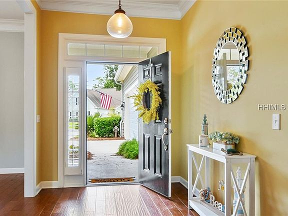 Perfectly located between Hilton Head, Beaufort, and Savannah, this home boasts 4 Bedrooms, 4.5 Baths, a large lanai and amazing long views of the lagoon. There are 3 bedrooms on the main floor, each with its own full bath. Upstairs is a huge 4th bedroom with full bathroom and walk in closet. With a gourmet kitchen and an oversized garage, you'll find the living is easy in this open concept floor plan. From the kitchen you'll be overlooking the Family Room, a fireplace, and a 6 panel sliding glass door allowing you unobstructed views of the water. No homes on one side add privacy and make this backyard the perfect place to gather and relax!
