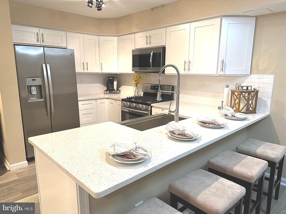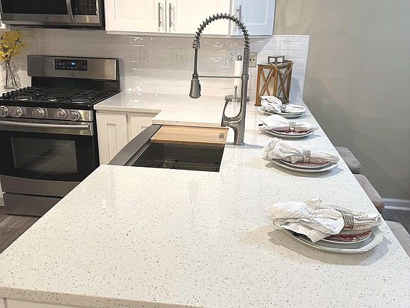 KITCHEN REMODEL COMPLETED. Warrington Hunt townhome with BRAND NEW kitchen. OPEN HOUSE on Sunday, 12/18 from 1-3. Well-maintained, 3-bedroom, 2.5 bath with open concept living, low HOA fees, vaulted ceilings, finished walk-out basement with office, brand-new gourmet kitchen and one-car garage with inside access. Enter the home to your living/dining room with neutral décor, dark engineered hardwood floors, chair railing/crown moldings, decorator style chandeliers and vaulted ceilings. The dining room flows into the newly renovated, modern, gourmet kitchen perfect for the distinguished chef; Samsung and GE stainless-steel appliances, new white Shaker Less Care brand cabinets (soft close, with specialty spice racks, turntables, stainless handles), new Quartz counter tops extended for bar seating, new stainless farmhouse sink with trays and cutting board, Glacier Bay spring neck pull down kitchen faucet and new neutral luxury vinyl wide plank floors. This sun-drenched eat-in kitchen is open to a large family room with multiple windows and wood burning fireplace. Step outside to your newly replaced deck (2018), perfect for lounging on the weekend or enjoying your morning coffee. Head upstairs to 3 bedrooms with ample closet space, 2 full bathrooms and 2nd floor laundry. The main bedroom, complete with 2 walk-in closets, has a bright, large ensuite bathroom with cathedral ceilings, jetted tub and stall shower. The basement, currently used as a family hang-out and playroom, includes a private office (staged as a guest room) and walk-out access. The home includes many upgrades; newer roof (2017), replacement windows with transferrable warranty (2020), replacement slider to the deck (2020), new water heater (2018), HVAC (2015), a drain and dry well installed to divert rainwater from the home and a Guardian home security system installed by the builder.