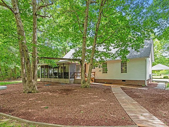 Welcome to your own private oasis with no HOA! This stunning ranch-style home is nestled on a lush, wooded one-acre lot, offering the perfect blend of tranquility & convenience. With 3 bedrooms & 2 bathrooms, this home boasts a desirable split bedroom floor plan that provides privacy and comfort for everyone. Entire interior freshly painted! As you step inside, you'll be immediately impressed by the soaring cathedral ceilings in the living room, which create a bright & airy atmosphere filled with natural light. The eat-in kitchen features sleek granite countertops & ample cabinet space. One of the highlights of this home is the huge screened-in back porch, which offers breathtaking views of the backyard. Whether you're sipping your morning coffee or hosting a summer barbecue, this porch is the perfect spot to soak up the beauty of nature. The wired shed with workbench makes for your very own home workshop! This home also includes a convenient 1-car garage & carport, providing ample storage space for your vehicles and outdoor gear!