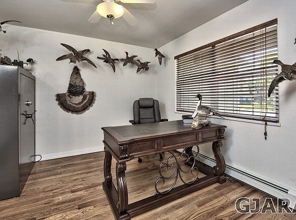 If you're looking for a big ol' house with room to roam inside and out, this home in Fruita's Orchard Valley is for you! There are four bedrooms and three bathrooms - AND an office AND a bonus room in 2,413 square feet - and that's just the beginning! Hardwood floors greet you at the entry of this nicely finished home - and there's a beautiful granite and gleaming stainless steel kitchen just off the spacious living room, which offers a stone-surround gas-log fireplace! The master suite and office are located on the main level - and you'll find custom tilework in the five-piece master bath! - And the goodies don't stop there! Now step outside into the roomy backyard and you'll find a big ol' garden shed - which stays - RV parking, and beautiful rear yard that backs to open space and pond! What are you waiting for? This home has everything you want, and it won't last long! See it today!