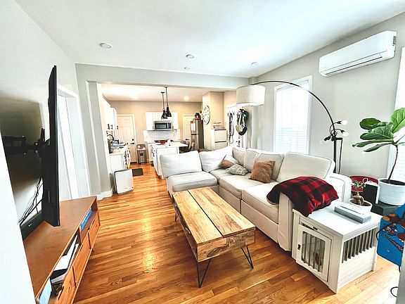 Recently renovated 2 bedroom 1 bathroom 1st floor apartment available July 1st. Featuring an open floor concept, the living room flows seamlessly into a modern kitchen complete with stainless steel appliances, a large eat in island, and quartz countertops. This well maintained unit comes with many modern amenities including in unit washer and dryer, mini split zoned heating and cooling system, nest thermostat, hardwood floors throughout the apartment, and opens up into a shared fenced in yard with a patio. The 2 bedrooms in this apartment include a spacious primary bedroom which has a double door closet and its own entrance and a second smaller bedroom/office. The bathroom includes a spacious tub shower combo with modern matte black fixtures. The location of this apartment can't be beat - 3 minute walk away from JFK station. Easy on street parking and walking distance from multiple grocery stores and restaurants. Requirements: - Must be available for a July 1st lease start date - Strong credit history (650+ credit score) - 3x rent total combined monthly income - First month, last month rent, and security deposit due at signing. NO BROKERS FEE! - No smoking - Proof of renters insurance required throughout lease term - Small pets negotiable ($75/month) Owner pays for water. Renter pays for gas and electric.