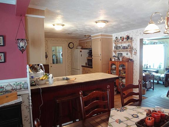 This adorable ranch style home has cottage charm from the outside, in. From the cedar shake siding, blue shutters, established perennial beds, shade trees, stone walks and borders, nothing has been overlooked. Two decks offer the best of both worlds; from the front, there are lake and hill views, which bloom in Autumn, and the back offers a serene tree lined lawn. Enter through the Atrium door into the dining area which opens to the kitchen by way of a breakfast bar. The living room is bright with natural light from the bow window. The quality accents of window shelving, scrollwork, color schemes, wall patterns in warm hues and the woodwork throughout this 3 bedroom, 1 and 3/4 bath home may have you oohing and aahing at every turn. This charming home is nestled on 1.35 acres on a quiet, paved, town maintained road, 1 mile to the neighboring hamlet amenities. Approx. 6 miles from US Highway 20