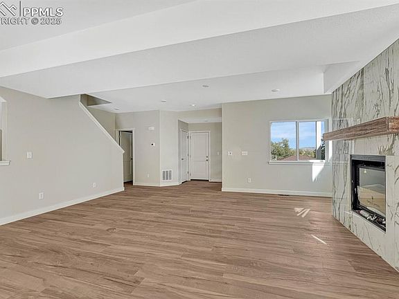 Today's Terrace at Creekwalk homes are a modern design in a coveted location. This newly built two-story offers a showcase kitchen. Luxurious waterfall island features cascading quartz. Belmont Fusion frameless cabinets with contrasting side panels include push-to-open Legra drawers for a sleek, handleless look to impress your guests. Custom full tile backsplash accentuates the kitchen along with 36” gas range with hood, stainless steel appliances including built-in microwave, and pantry cabinet. Main level features beautiful and long-lasting luxury vinyl floor and generous can lighting placement, with a gas fireplace in the living room and sliding door to the back yard from the dining room. Modern exterior elevation welcomes you into this open concept layout with double primary suites and finished basement with wet bar. Featuring nine foot ceilings on both the main and upper levels, this home is packed with features. Double owner’s suites offer walk-in closets and attached bathrooms with double sinks. Floating vanities, quartz counters, undermount sinks, and 12x24 tile floors feature in the bathrooms. Laundry is upstairs with the bedrooms. Fully finished basement is a great secondary living space. There’s a bedroom with walk-in closet, full bathroom, and spacious rec room with wet bar! Large side and back yards offer ample space to play, garden, or entertain. From the basement wet bar and finished garage interior to the central air conditioning, fenced yard, and tankless water heater all included standard, this home is fully loaded. Near internationally acclaimed destination The Broadmoor, Today's Terrace at Creekwalk is convenient to I-25, Hwy 115, and a wide array of the newest shopping, dining and more exciting nearby amenities. Choose your paint color, cabinet stain, backsplash, floor color, countertops, and more. Upgrades available upon request. New construction located in Southwest Colorado Springs' new Creekwalk neighborhood. This is an HOA-free community!
