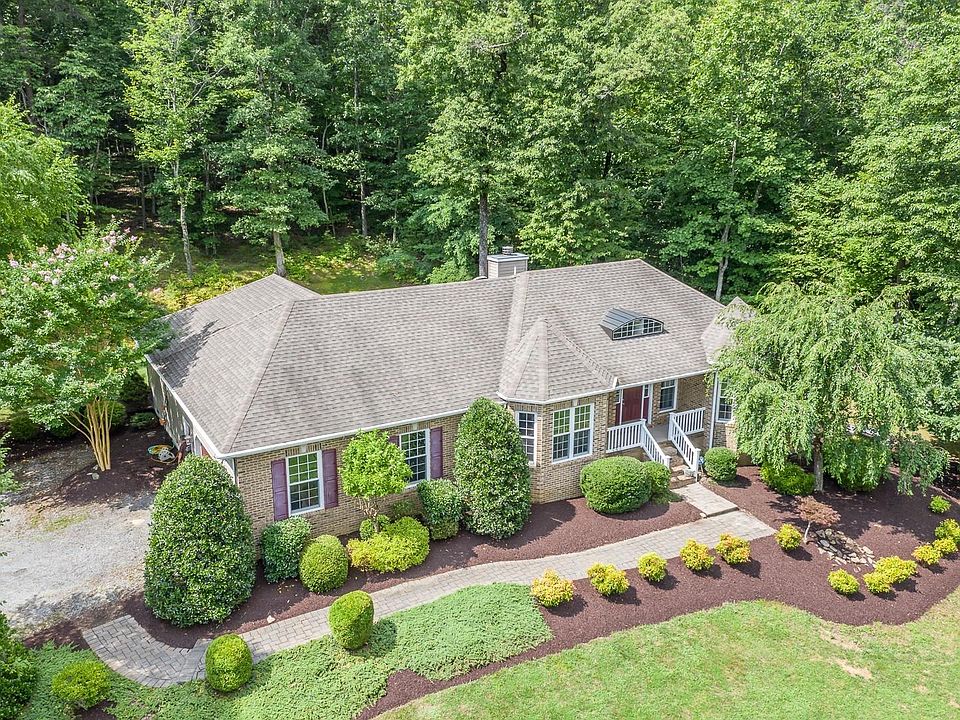 Have your REALTOR(r) show you today!This custom-built brick ranch is a mountain retreat close to town! One-level living with gleaming hardwoods, built-in bookshelves, plenty of storage, a fully finished basement including a movie room (or workout space!) Every detail covered including whole house water filter, gutter guards, newer (2017) HVAC unit upstairs, whole-house Central Vac, Pull out drawers in kitchen cabinets, easy tilt in Simonton Prism Platinum windows with lifetime glass breakage warranty (low-E argon)!, Poured concrete foundation with rebar reinforcement, 8 &10'' walls, architectural roof, power fan in attic, maintenance free vinyl siding, soffit, and facia & vinyl railings on front porch, 2 fireplaces wired for gas. Love