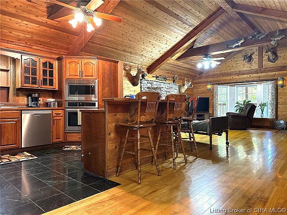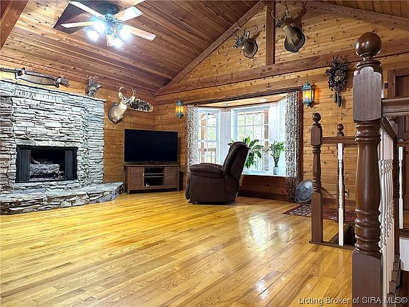 WOW!!! This property is calling you home and listed below appraisal value! The gorgeous custom built home boasts more than 3,600 finished square feet. It is almost like 2 homes in 1! The main floor has a stunning open floor plan with a vaulted ceiling and beams, the kitchen houses hickory cabinets, cultured marble can be found in the windows of the living area and master bedroom, there is western white cedar in the master bedroom closet and on the ceiling in the sunroom... There are just too many beautiful features to list! 2 bedrooms and 3 bathrooms are on the main floor, both bedrooms have their own bathrooms. The full, finished basement has a full kitchen, an oversized dining/living area, 4 bedrooms, 2 bathrooms, a laundry room, and its own entrance with a covered stone patio. The highlight of the outdoor space is the inviting wraparound porch. The home sits on 3.22 acres near the dead end along with a pool deck and house (lots of storage), gazebo for a hot tub, carport, and detached garage with a lean-to. The yard is beautifully landscaped, adding to the overall appeal to this private setting. Schedule your private tour today! THIS IS A MUST-SEE!!! :::NOTE::: This property is sold "as is" but the seller welcomes inspections. Sq ft & rm sz approx.